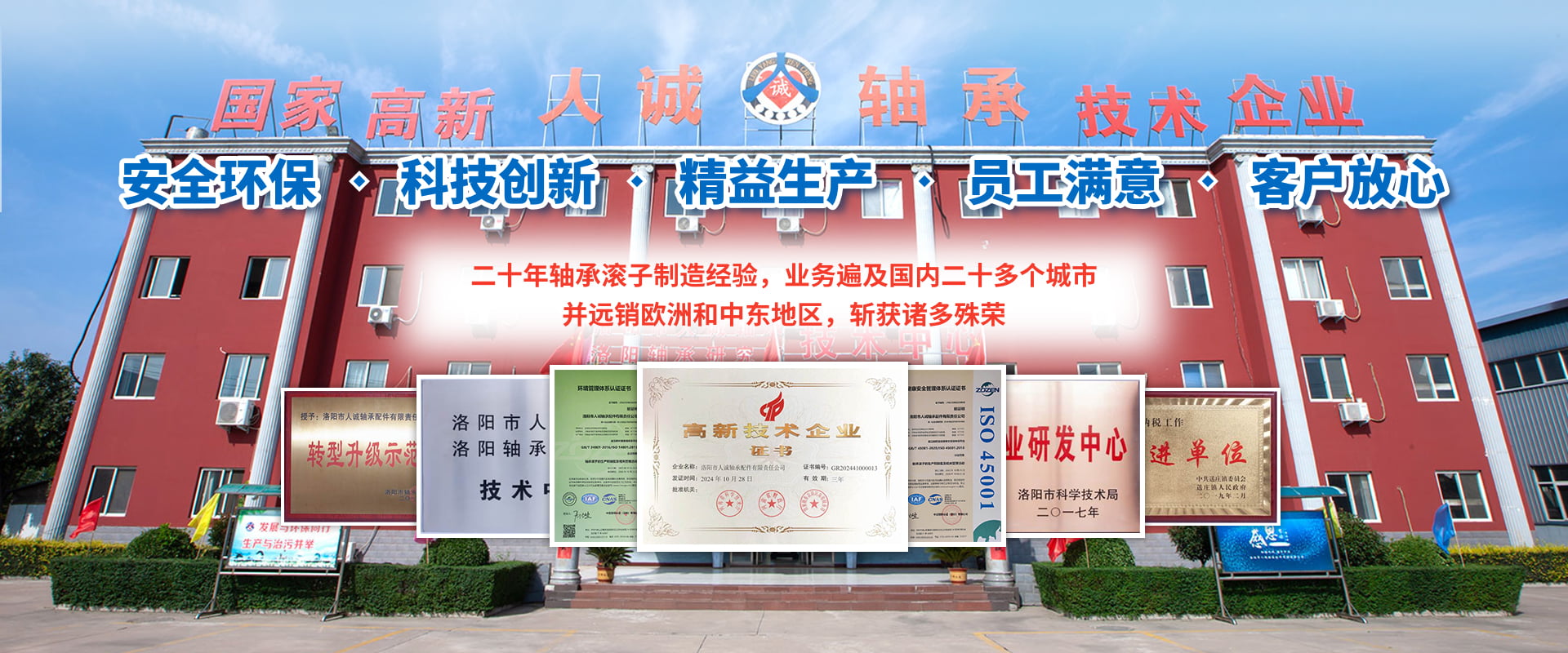 洛陽(yáng)市人誠(chéng)軸承配件有限責(zé)任公司成立于2003年,2015年由洛陽(yáng)搬遷至孟津循環(huán)經(jīng)濟(jì)區(qū)送莊鎮(zhèn)梁新路,占地60畝,建筑面積20000余平方米。公司專(zhuān)注生產(chǎn)高精圓錐軸承滾子,可根據(jù)客戶(hù)需求研發(fā)及來(lái)樣加工,年產(chǎn)精品滾子4億粒?! ∥覀兪冀K堅(jiān)持“安全環(huán)保、科技創(chuàng)新、精益生產(chǎn)、員工滿(mǎn)意、客戶(hù)放心”的經(jīng)營(yíng)理念。先后與河南科技大學(xué)、洛陽(yáng)師范學(xué)院、方智測(cè)控合作,并與國(guó)家洛陽(yáng)軸承研究所聯(lián)合成立“技術(shù)中心”,建立了良好的產(chǎn)學(xué)研合作機(jī)制,為公司的創(chuàng)新發(fā)展打下了堅(jiān)實(shí)的基礎(chǔ)?! ?018年公司被認(rèn)定為國(guó)家高新 技術(shù)企業(yè),通過(guò)了IATF16949:2016質(zhì)量管理體系、環(huán)境管理體系、職業(yè)健康安全管理體系、知識(shí)產(chǎn)權(quán)管理體系等多項(xiàng)認(rèn)證。擁有完善的檢測(cè)手段,先進(jìn)的工藝,穩(wěn)定的設(shè)備,優(yōu)良的服務(wù)。公司董事長(zhǎng)葉會(huì)卿為洛陽(yáng)市工商聯(lián)副主席,洛陽(yáng)市軸承滾子行業(yè)協(xié)會(huì)會(huì)長(zhǎng),法人李?lèi)?ài)芳女士從事軸承滾子制造30余年,積累了豐富的生產(chǎn)管理經(jīng)驗(yàn),誠(chéng)實(shí)守信、務(wù)實(shí)、合作、共贏(yíng)的作風(fēng)深受業(yè)界好評(píng)。